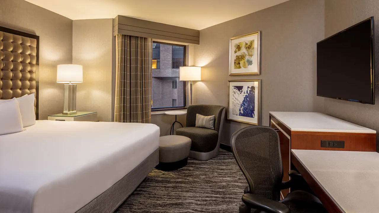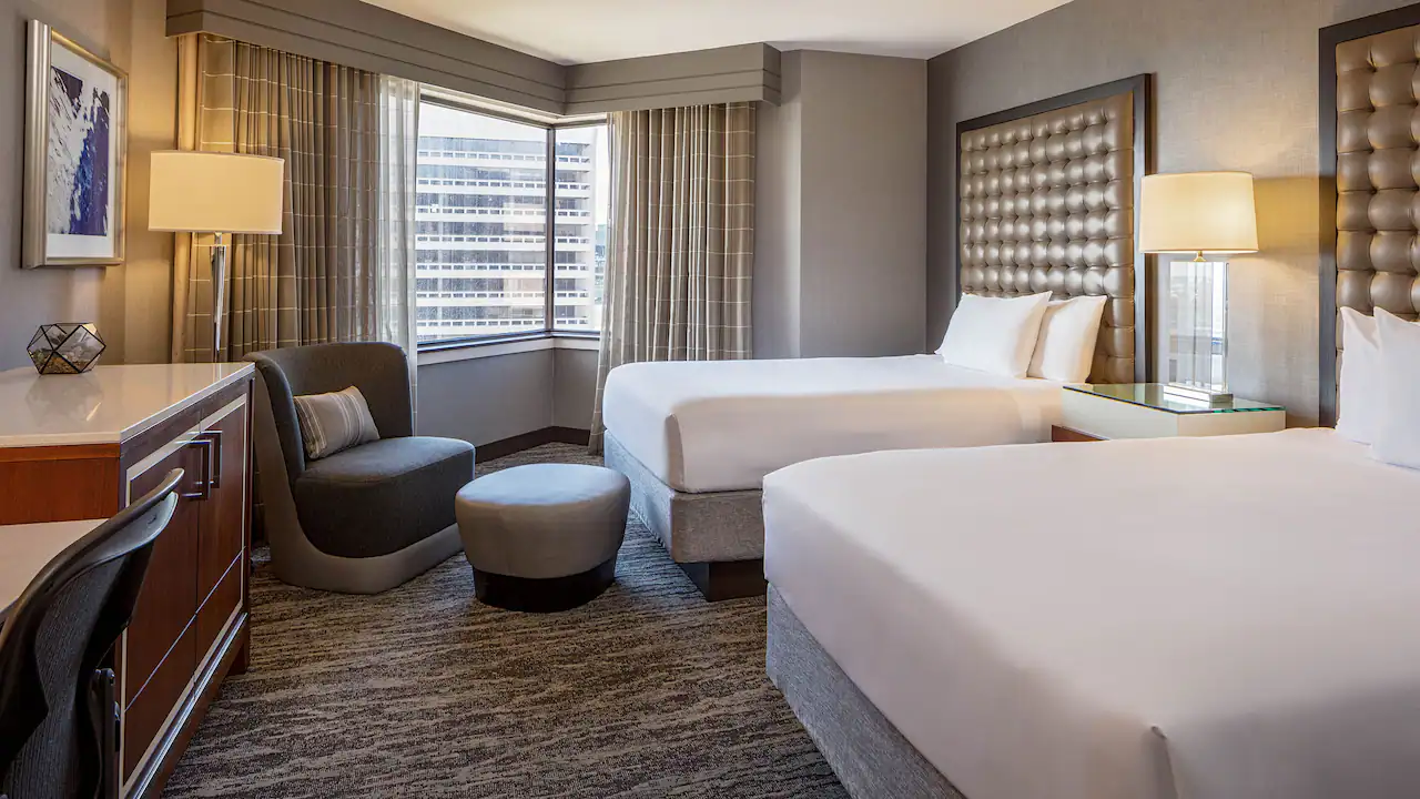 Stay in one of 910 contemporary hotel rooms, offering impressive views of downtown St. Louis, Missouri or the iconic Gateway Arch. Stay productive with oversized workstations and sink into plush bedding and comfortable furnishings.